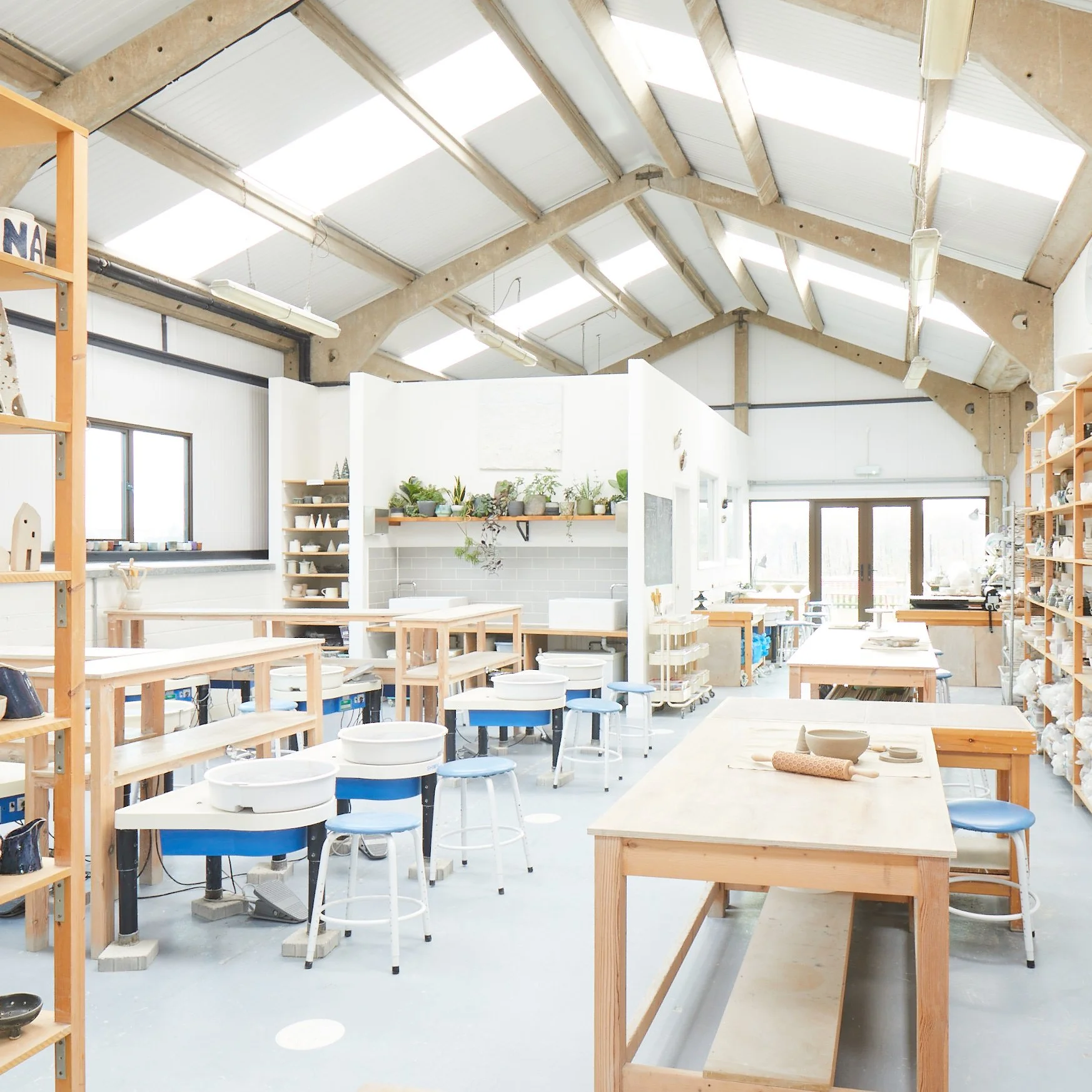 Our studio is wheelchair accessible to the majority of users with standard sized chairs. There is a wheelchair-accessible toilet in the new studio, The Grain Store, which can be accessed easily from the car park. Unfortunately we do not have any wheelchair accessible pottery wheels but our benches are suitable for wheelchair users to hand build or sculpt.