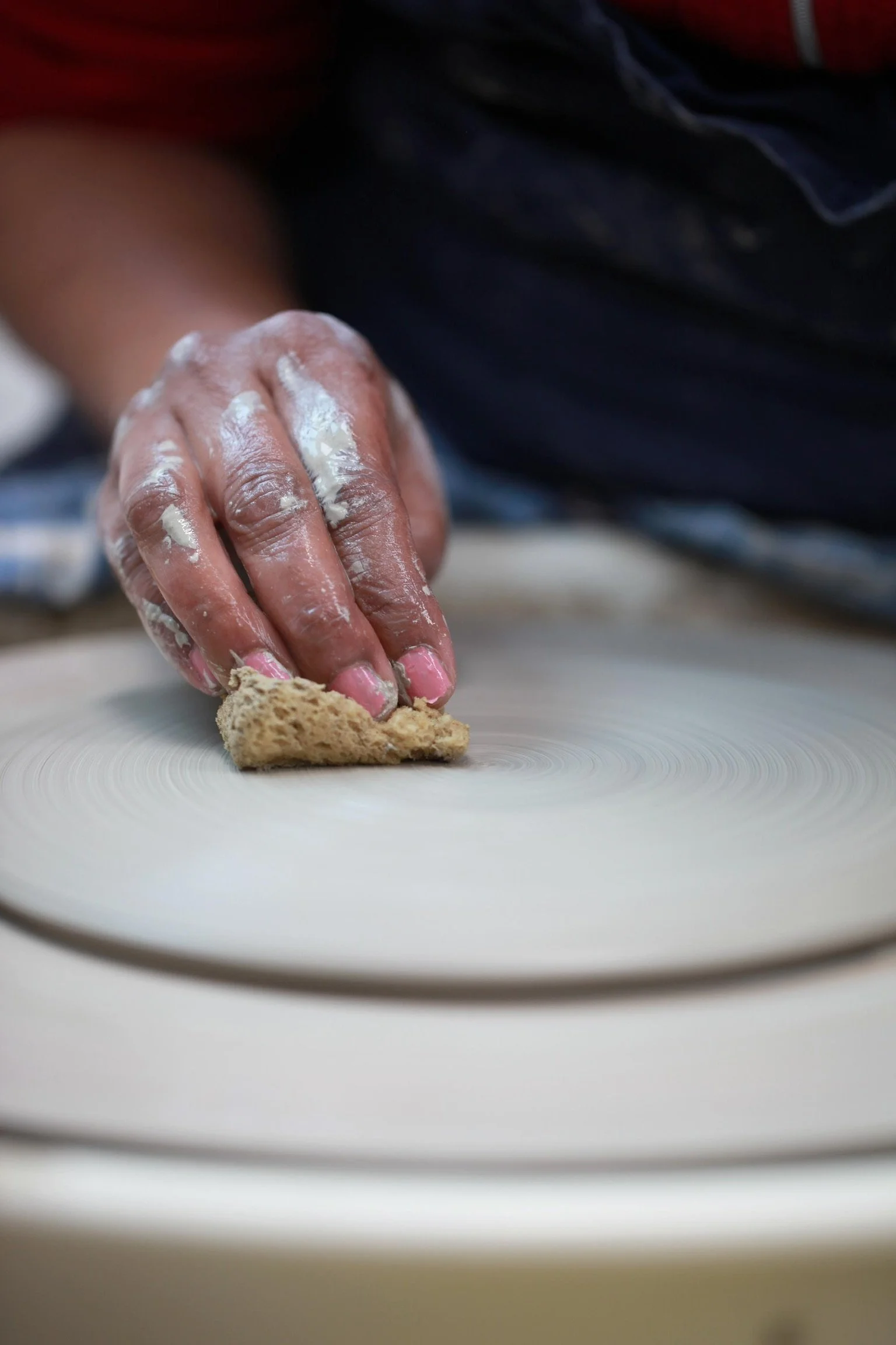 You should wear comfortable clothes which you don’t mind getting a bit of clay on! Layers can be a good idea as temperatures can be a little variable. All students should wear comfortable, flat shoes with non-slip soles and covered toes, and bring an apron/cover-up. Long hair should be tied back for wheel work. We also recommend that jewellery, watches and other valuables are left at home.