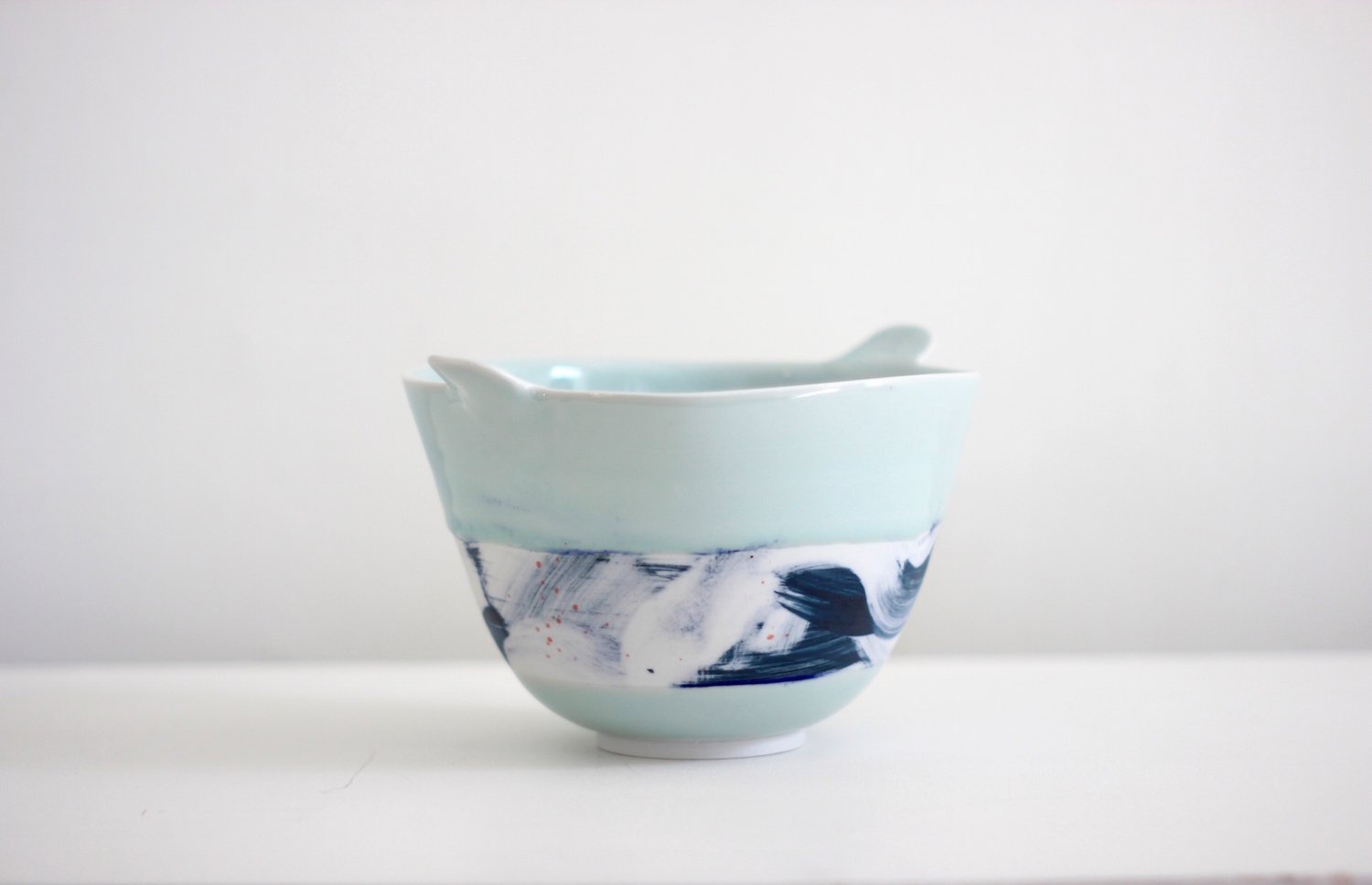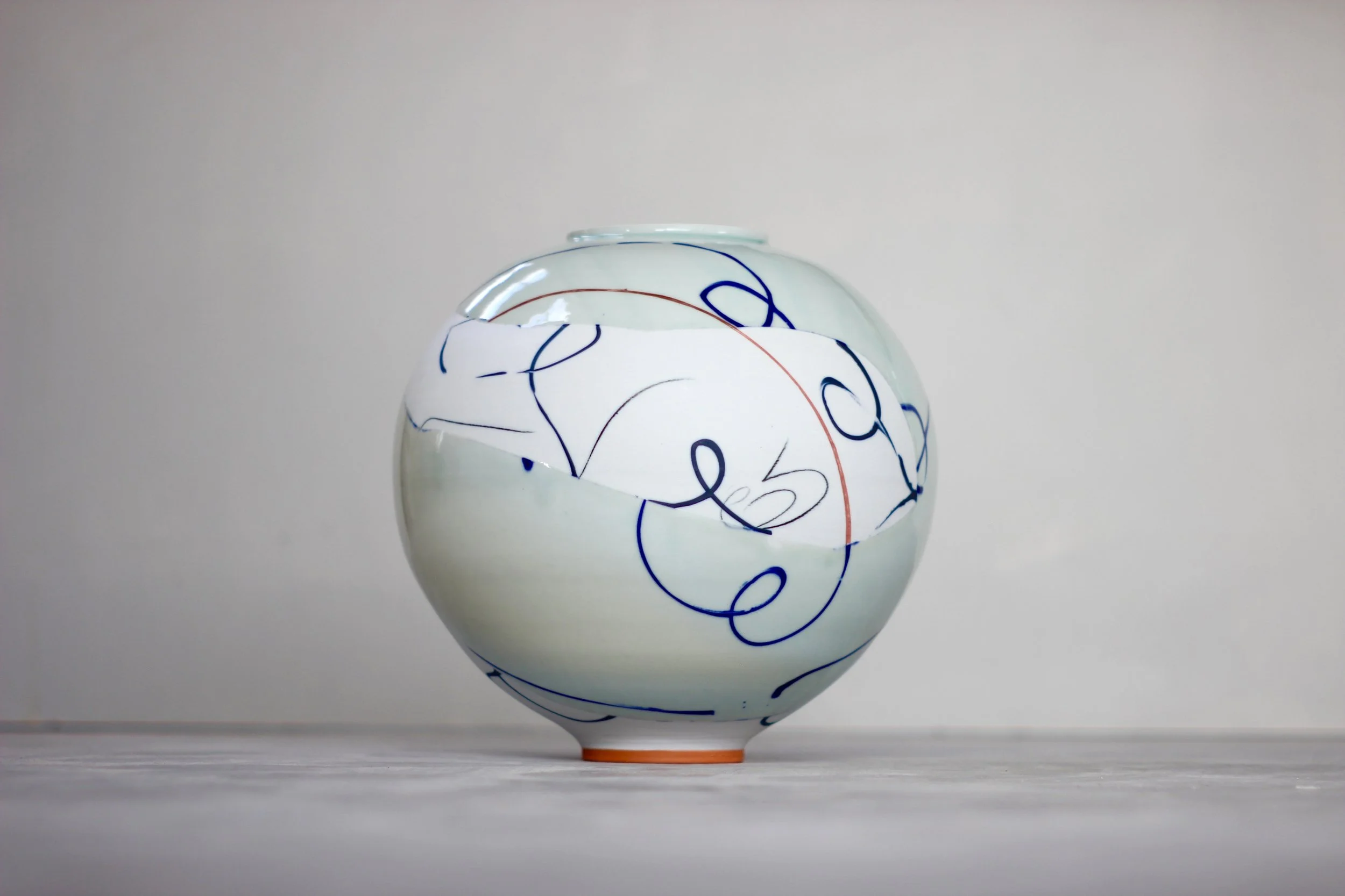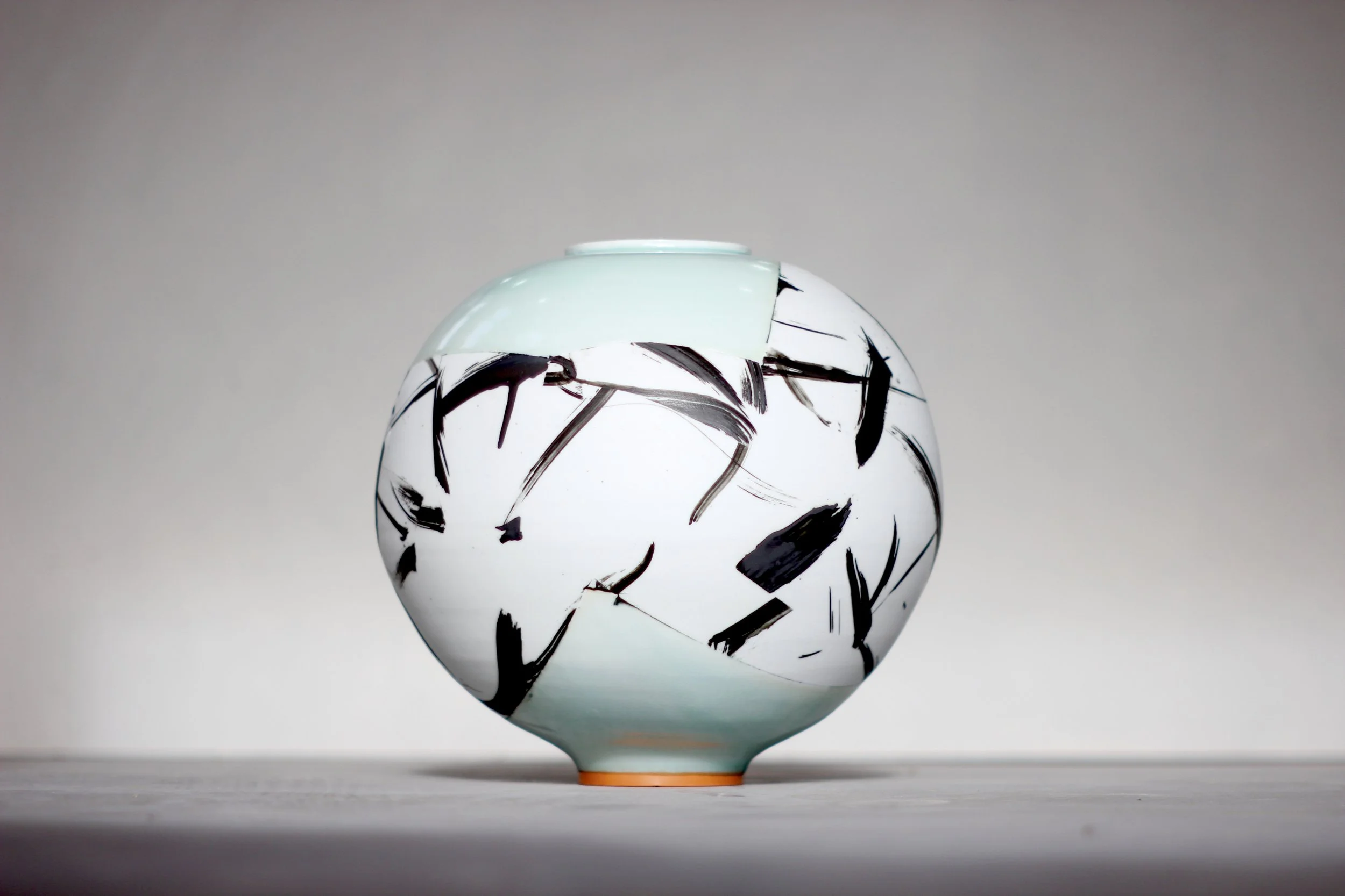 Adam’s work centres on the potter’s wheel. Traditional eastern forms inspire him, but spontaneity as a means of personal expression is key to his work. The exuberant action of throwing is enhanced by a continued experimentation through process, form and colour. Mark Making is intuitive, sometimes relating to form, or process of making, sometimes it’s part of a personal narrative.