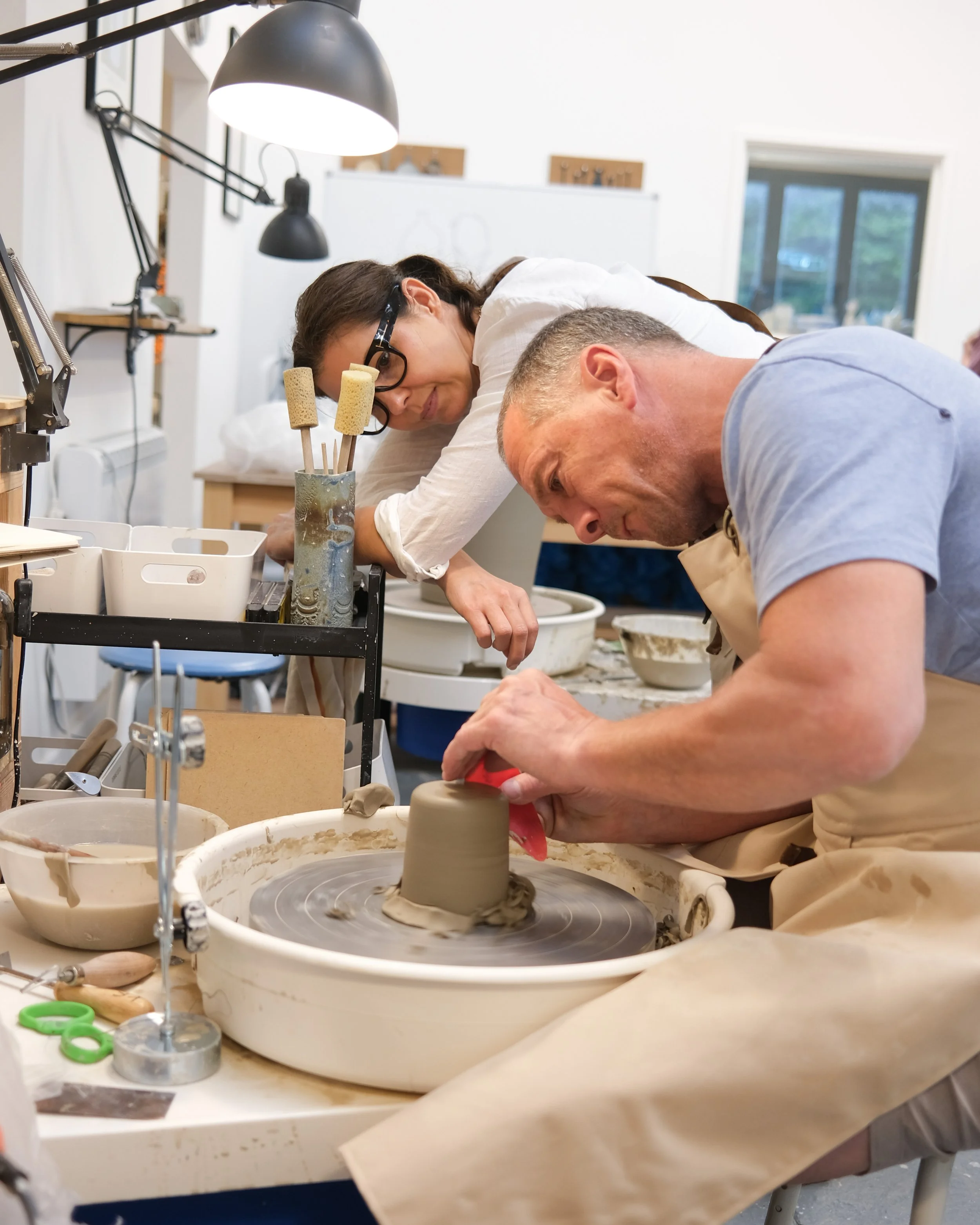 We would like to welcome those who can already prepare clay properly, centre on the wheel and throw an even and stable 6 inch cylinder, and have some ability in handle making.
