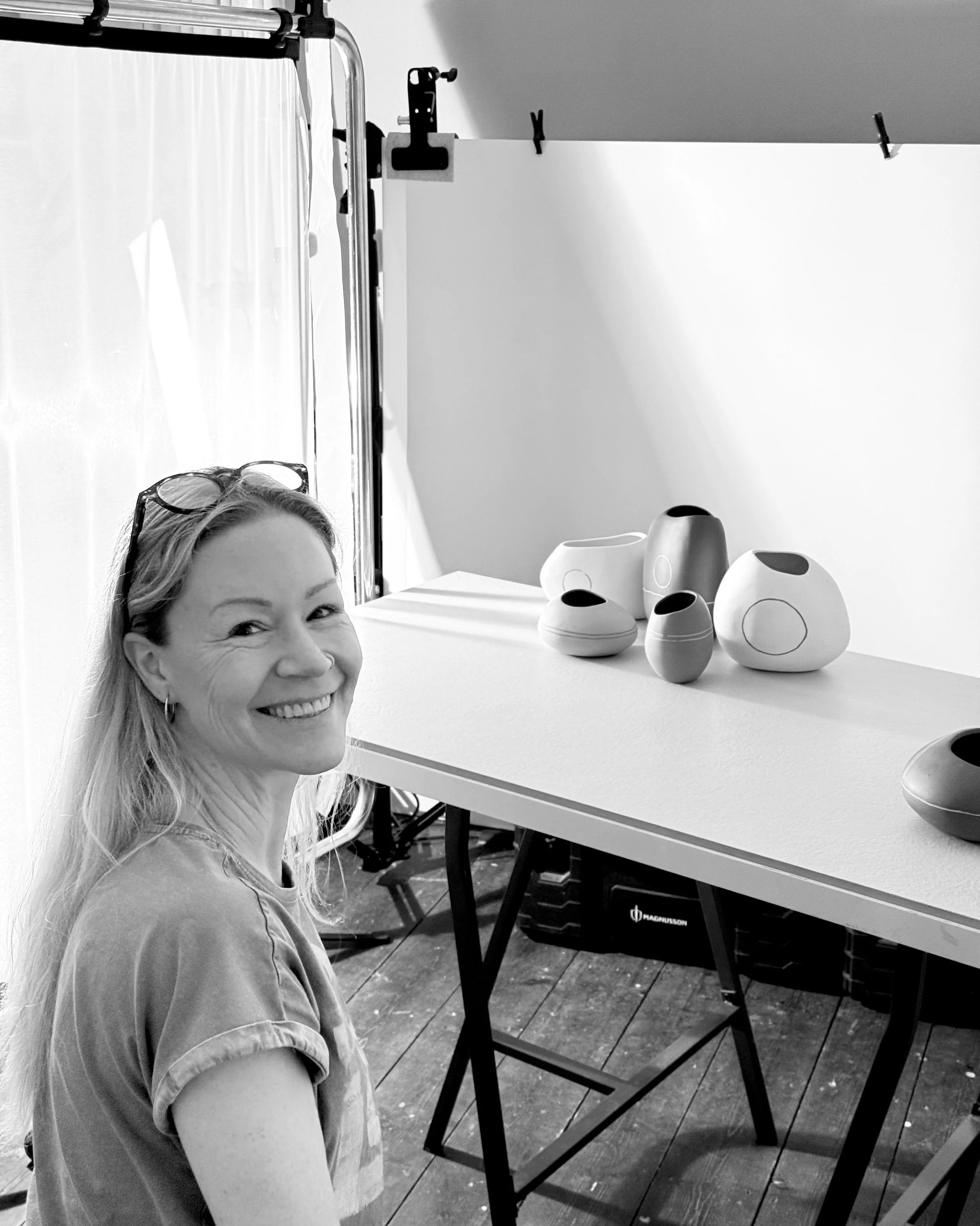 Over the past twenty years, Bekky has developed her ceramic skills through a varied practice. Initially she worked with slabs to construct both functional and sculptural pieces. Over the last ten years however she has developed a slip-casting process whereby she instinctively sculpts from a solid piece of clay to create plaster moulds and casts with hues of coloured porcelain slip. Discovering the concept of Biophilia while doing her Masters, which relates to our intrinsic connection with the natural world, she began creating asymmetrical vessels, as found in nature. With a past career as a landscape gardener, Bekky has always enjoyed getting her hands in the earth.